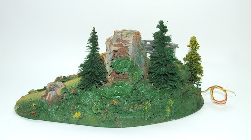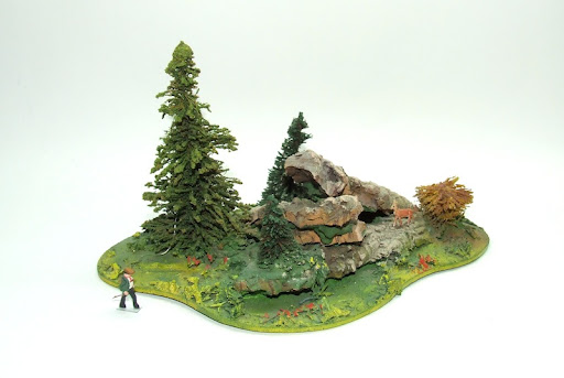 Ausgeschmückt werden die Landschaftsmotive mit verschiedenen "Zurüstteilen" von Fremdfirmen wie MMM, Creglinger Häusgen, wahrscheinlich Preiser Plastefiguren und vermutlich noch weitere.