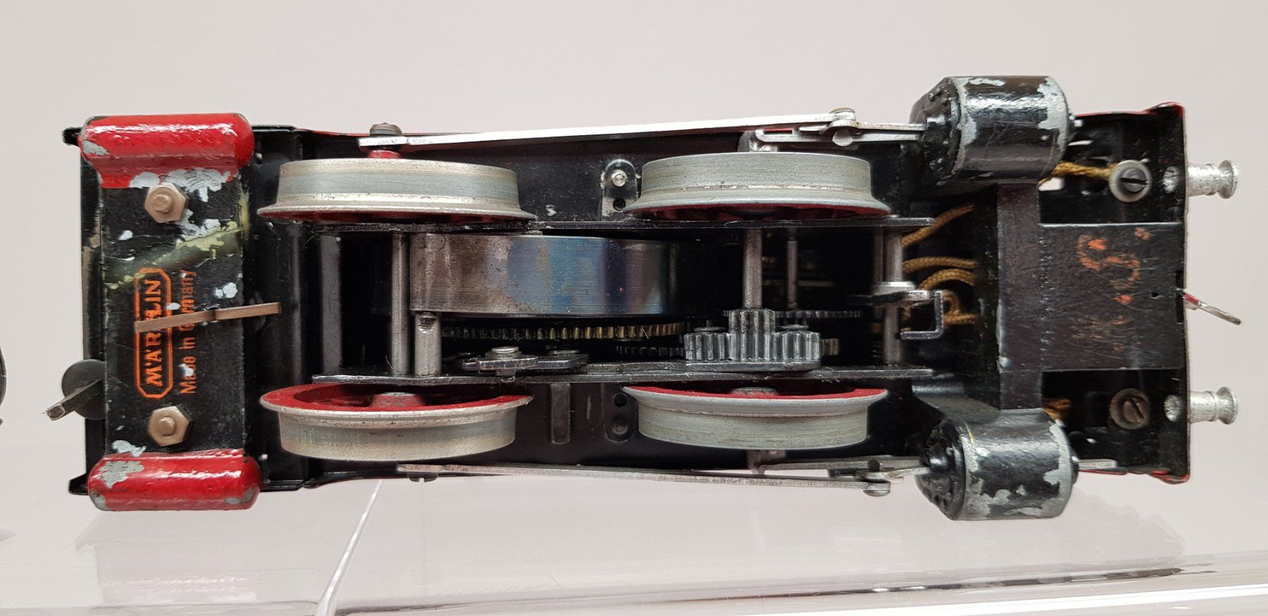 Klaus, noch etwas zum Uhrwerk, obwohl sie eigentlich im Katalog eng beieinander liegen, kann man ein 900´er mit einem 910´er nicht vergleichen, da liegt zuviel dazwischen. Ein Uhrwerk der 910´er Klasse ist eher ein kleineres 920er Uhrwerk vom Aufbau her, ein 900´er kommt da bei der Regulierung, der Bremse und auch der ganzen Zahnradkaskade nicht mit. Bei den frühen Werken war das noch deutlicher, weil die 900´er anfänglich ja auch keine Umschaltung der Fahrtrichtung vom Gleis aus hatten. Die bekamen die Loks erst mit den Uhrwerken der zweiten Generation, die dann nicht mehr vorne eingesteckt und hinten seitlich verschraubt wurden, sondern von oben durch den Lokrahmen an die bekannten herausgekanteten Flügel geschraubt wurden.